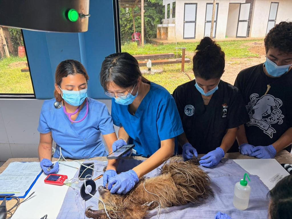健康檢查的項目包括血檢、X 光和理學檢查,之後會為動物施打體內外寄生蟲的預防藥物,以及施打皮下輸液來補充麻醉以及術前禁食時段的沒有攝取到的水分。在我工作的救傷中心中,也有給獸醫系學生實習的機會,讓世界各地的學生們能夠擁有到亞馬遜雨林了解這裡的生態的機會。