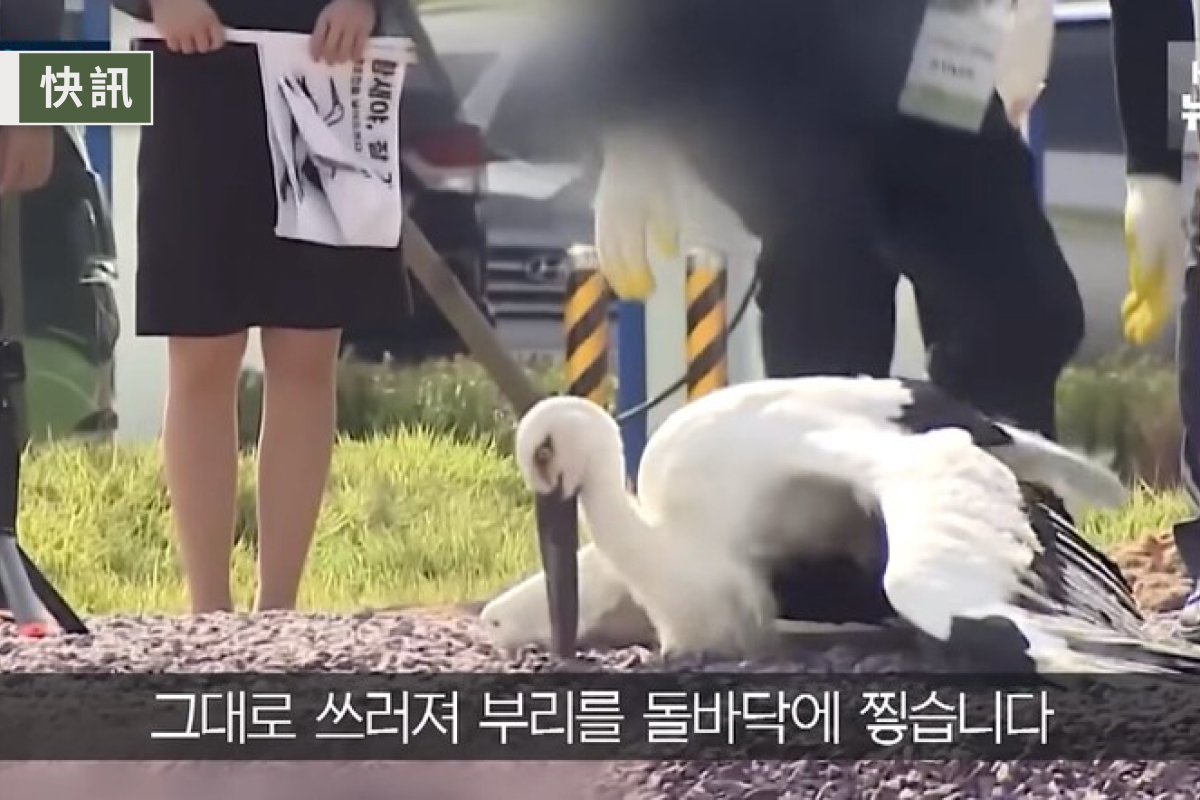 10月15日,韓國慶尚南道金海市花浦川濕地科學館舉辦開幕式,典禮中安排野放三隻「東方白鸛」,未料現場開啟籠子時,其中一隻雄鸛鳥卻呈現癱軟狀態,經現場人員協助離開籠子後,更是直接踉蹌倒地、滾落斜坡,雖然立即接受治療,該隻東方白鸛仍不幸死亡。