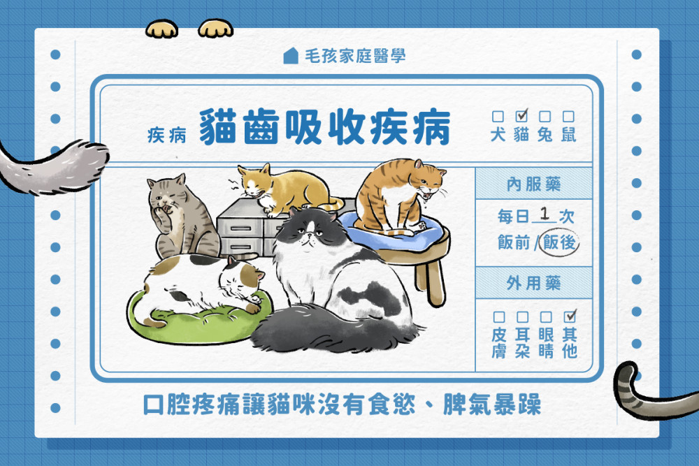 「齒吸收發生的原因不明,僅能推測可能和口腔發炎、牙齒受傷有關,但很多時候獸醫師並不知道為什麼這隻貓咪會在這個年紀、這個時間點發生齒吸收。」